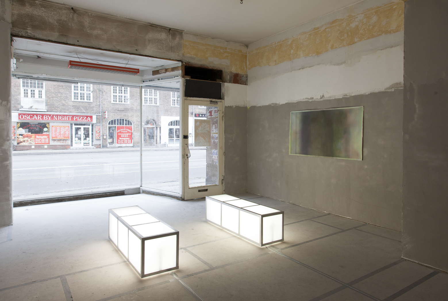Mixed media on canvas 159 x 89 cm light box sculpture